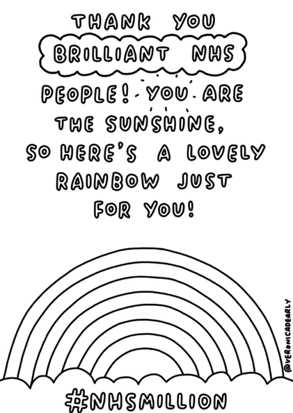 The NHS Million website are currently offering free downloadable colouring sheets for all. Have a browse and print, download and colour whichever you like to display in your windows - another lovely way to show your support. If you can, email any pictures of your colouring to me and I will add them to our school gallery on the website.
