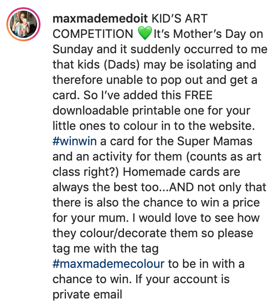 Please find below a free download from Max Made Me Do It. Max Made Me Do It is a small business run by an artist called Carol. Carol is extremely talented and has created this free download for children, which she is doubling up as a colouring competition on Instagram.